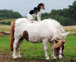 يرتبط كلب الصيد الروسي فريدي من نوع جاك راسل مع دايزي مهرة بصداقة من نوع خاص .اما اكثر ما يحبان فعله هو القيام فريدي هو الركوب فوق ظهر صديقته و الذهاب في جولة قصيرة. وبدات الصداقة عندما لمح فريدي اح الاطفال يمتطون ظهر دايزي للذهاب في نزهة . عندها اندفع الكلب عبر الفناء ليقفز فوق ظهرها. تقول مالكة الكلب باتريشيا سوينلي قفز فريدي ليقف مكان السرج و لم يبد ان ذلك ازعج دايزي على الاطلاق . منذلك الوقت استمر فريدي الفارس في تكرار النزهة مرتين او ثلاثا يوميا . و اليوم و بعد ان تقدم فريدي في العمر قلت حركته و قفزاته لكنه مازال مستمرا في تقليده القديم الذي اذا رفعه احدهم فوق ظهر المهرة . فضلا عن ذلك تستمتع دايزي بجر فريدي و هو جالس على العربة و تقول باتريشيا : قد يفعل فريدي اي شيئ لينال نصيبه من المرح